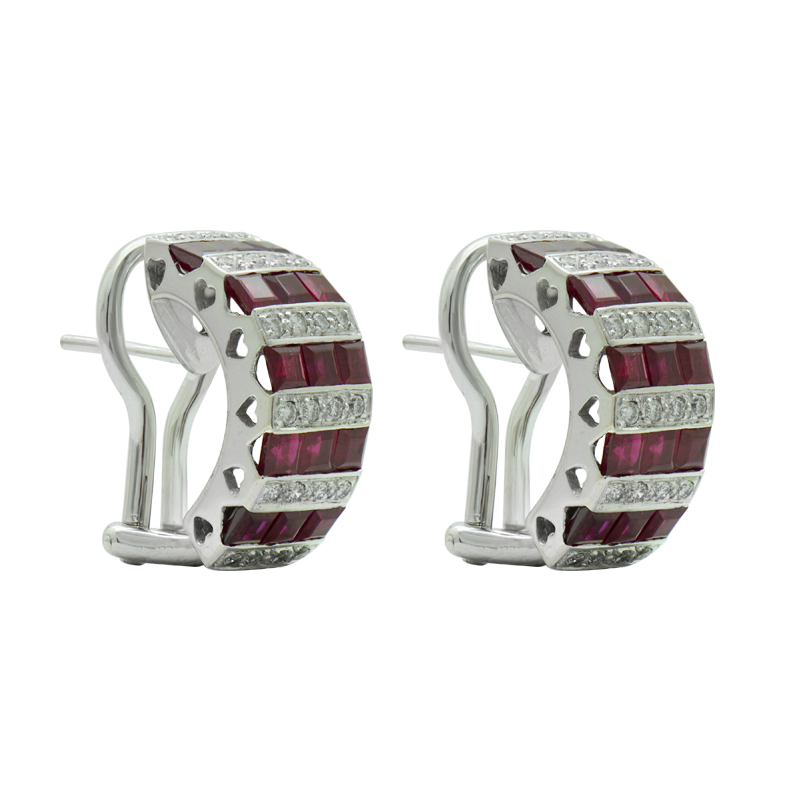 ✔Conjunto Oro 18 kilates - Anillo y aros con brillantes y rubíes